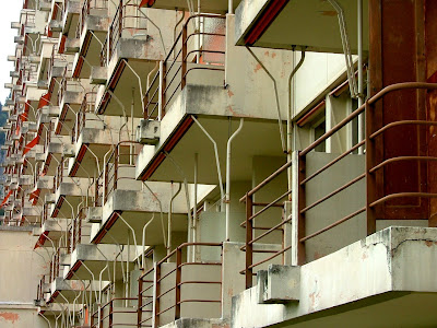 Le sanatorium Martel de Janville fait partie des meilleurs témoins de l'évolution de l'architecture sanatoriale, et plus largementhospitalière, initiée avant la seconde guerre mondiale et qui conduira à partir des années cinquante à la réalisation des ensembles hospitaliers modernes. Plus que la concentration de l'ensemble des fonctions au sein d'un bâtiment unique, c'est l'empilement systématique des niveaux de chambres et l'utilisation d'un «plateau médical» - bien que toujours embryonnaire à Martel de Janville - qui mérite d'être relevé. Au modèle horizontal qui préside au fonctionnement du sanatorium depuis ses origines dans les années 1860 en Allemagne, tend à se substituer un modèle vertical lié à la rationalisation des systèmes de soins qui préfigure l'hôpital moderne organisé en «services» différents indifféremment juxtaposés les uns aux autres. La notion d'horizontalité attachée au sanatorium, si fortement ancrée dans l'imaginaire collectif et qui, par métaphore, met en écho l'horizontalité des galeries filantes et celle du corps étendu pour la cure d'air, a forgé l'esthétique de ces établissements, surtout pendant l'entre-deux-guerres quand les architectes, à grand renfort de galeries en porte-à-faux, d'allèges et d'auvents suspendus, en ont fait un élément constitutif de la culture sanatoriale. Répondant à des exigences fonctionnelles mais également disciplinaires, les longues galeries collectives de cure, inlassablement parcourues par les infirmières, garantissaient en effet le contrôle social et médical des malades étendus au grand air. Au contraire l'unité thérapeutique individuelle définie comme «cellule de cure» et dissociant la chambre de son balcon, esquissée par Abraham et Le Même dès 1928 dans le projet du sanatorium de Plaine-Joux, devient à Martel de Janville le module constitutif d'une grille de façade homogène dans ses deux directions et donnant la possibilité, contrairement au modèle à gradins, un empilement sans restriction des niveaux. Chaque patient dispose désormais d'une unité de soin idéalement définie dont les caractéristiques climatiques peuvent être modulées selon le bénéfice thérapeutique escompté dans la cure antituberculeuse.